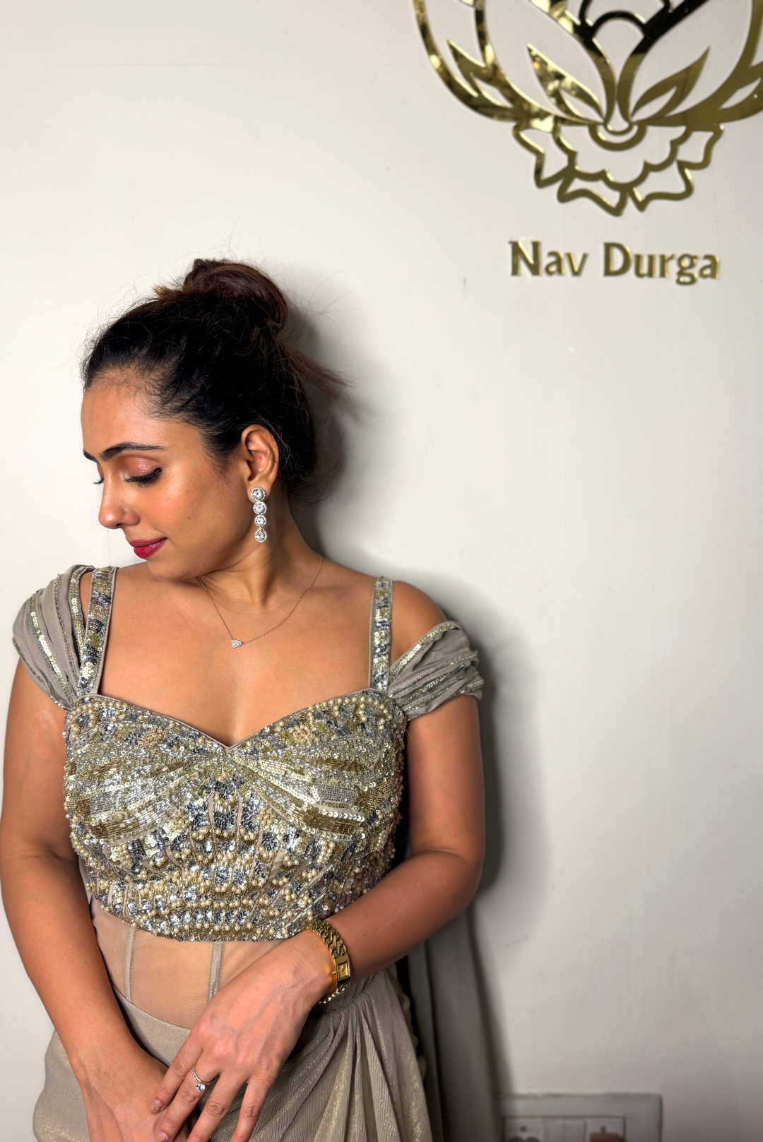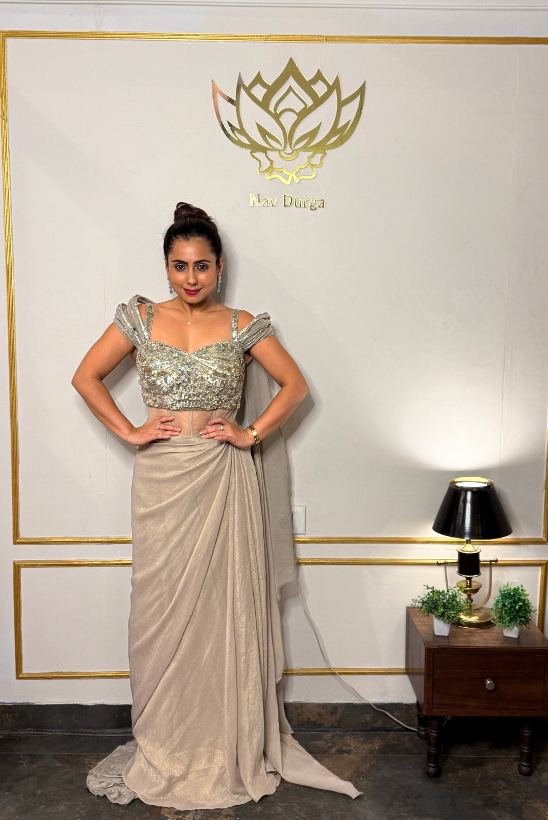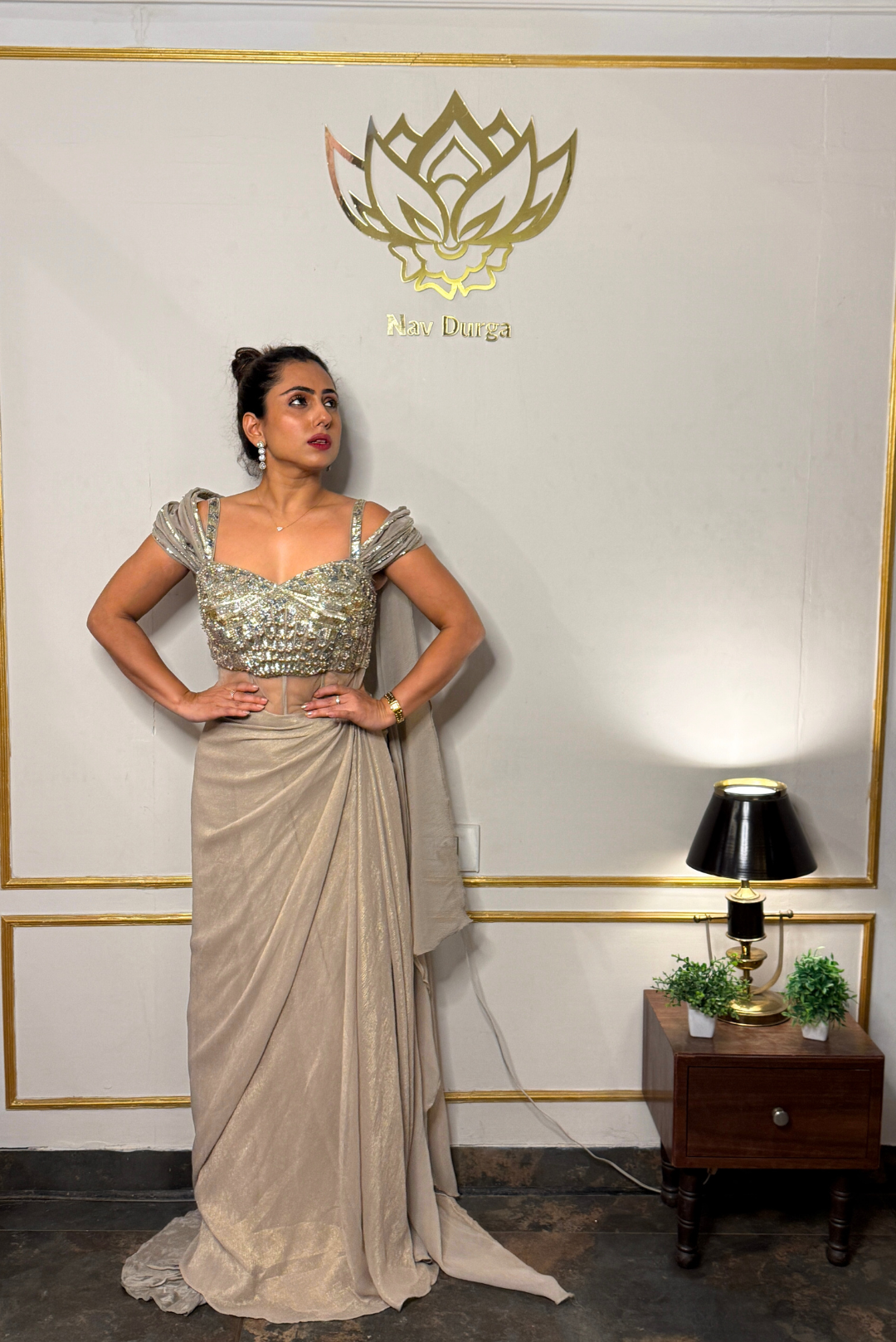 Turn heads with this champagne gold crush tissue gown that blends subtle shimmer with effortless charm. The sweetheart neckline enhances its feminine grace, while the sequin detailing adds just the right hint of glam.